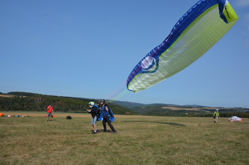 Von dort aus genießen wir die Aussicht und begeben uns auf die Suche nach aufsteigender Luft, die uns länger in der Luft hält. Nach spätestens 15 Minuten schweben wir wieder dem Boden entgegen.